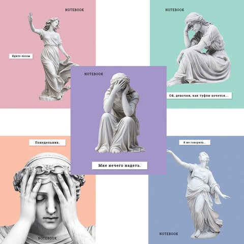 Тетрадь А5 48 л., ПЗБМ, скоба, клетка, Soft Touch, "Ой, девочки" (5 видов), 24147