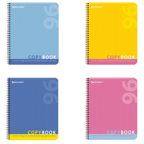 Тетрадь А5, 96 л., BRAUBERG, гребень, клетка, обложка картон, ОДИН ЦВЕТ, 401878