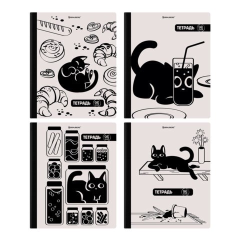 Тетрадь А5 96 л. BRAUBERG, на сшивке с корешком, клетка, обложка картон, "Кот-Непоседа", 405292