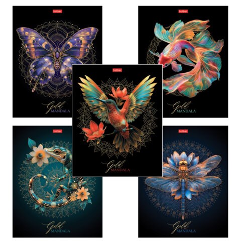 Тетрадь А5, 96 л., HATBER, скоба, клетка, матовая ламинация, 3D-фольга, "Золотая романтика" (микс), 089287, 96Т5лофВ1