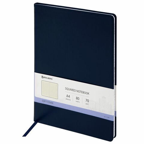 Тетрадь БОЛЬШОЙ ФОРМАТ (200x252 мм) В5, BRAUBERG "Metropolis Extra", под кожу, клетка, 80 л., синий, 111049