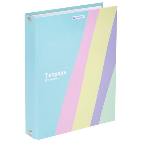 Тетрадь на кольцах А5 175х215 мм, 120 л., твердый картон, клетка, BRAUBERG, кросс-серия PASTEL, 405198