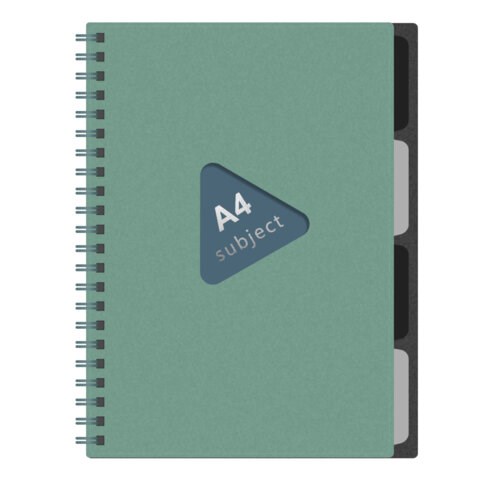 Тетрадь обложка пластик, А4 80 л., гребень, 4 разделителя, клетка, BRAUBERG, зеленый, 405363