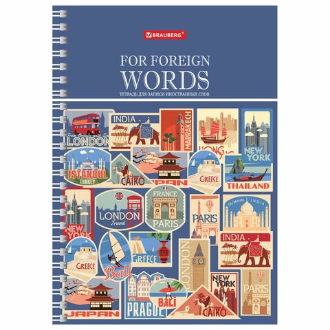 Тетрадь-словарь для записи иностранных слов А5 48 л., гребень, клетка, BRAUBERG, 403563