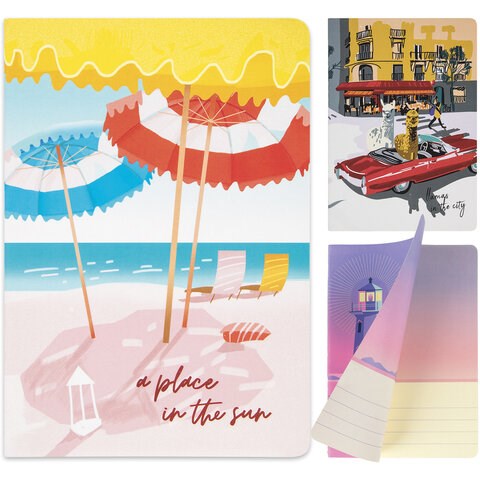 Тетради 40 л. в линию обложка SoftTouch, НАБОР 3 шт., бежевая бумага 70 г/м2, сшивка, А5 (147х210 мм), ПУТЕШЕСТВИЕ, BRAUBERG, 403799