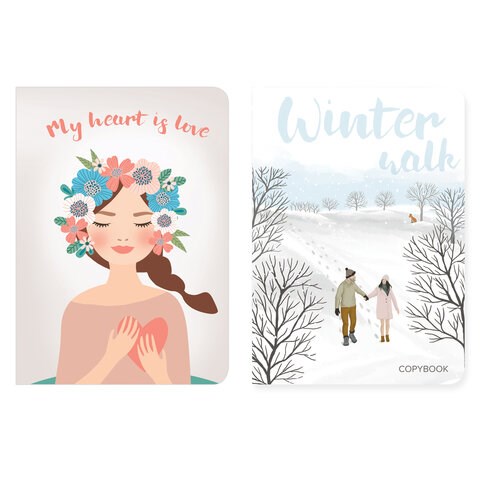 Тетради-скетчбуки 60 л. обложка SoftTouch, НАБОР 2 шт., бежевая бумага 70 г/м2, сшивка, B5 (179х250 мм), ROMANTIC, BRAUBERG, 403832
