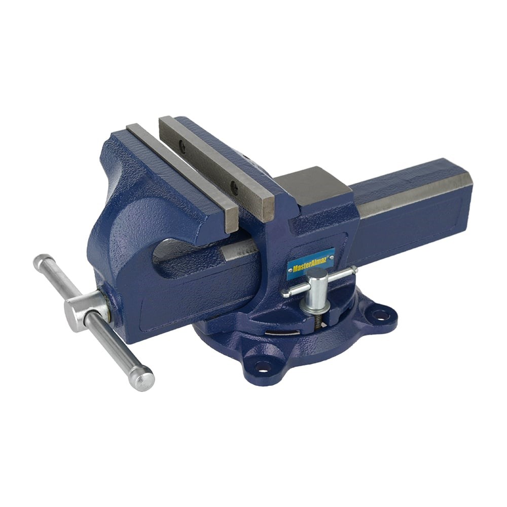 Тиски поворотные слесарные с наковальней предназначены для фиксации ручным усилием между подвижной и неподвижной губками различных заготовок для их дальнейшей обработки. Массивный чугунный корпус и основание покрыты краской, защищающей тиски от коррозии, что увеличивает их рабочий ресурс. Сменные зажимные губки выполнены из закалённой стали высокого качества. Наличие наковальни расширяет функциональные возможности слесарных тисков. Размер тисков 6 ". Предусмотрено крепление к верстаку (рабочему столу). Ширина челюстей(открытие): 150мм. Глубина челюсти 18мм. Открытие челюстей : 150мм. Глубина горла: 71мм. Длина ручки 19 см.