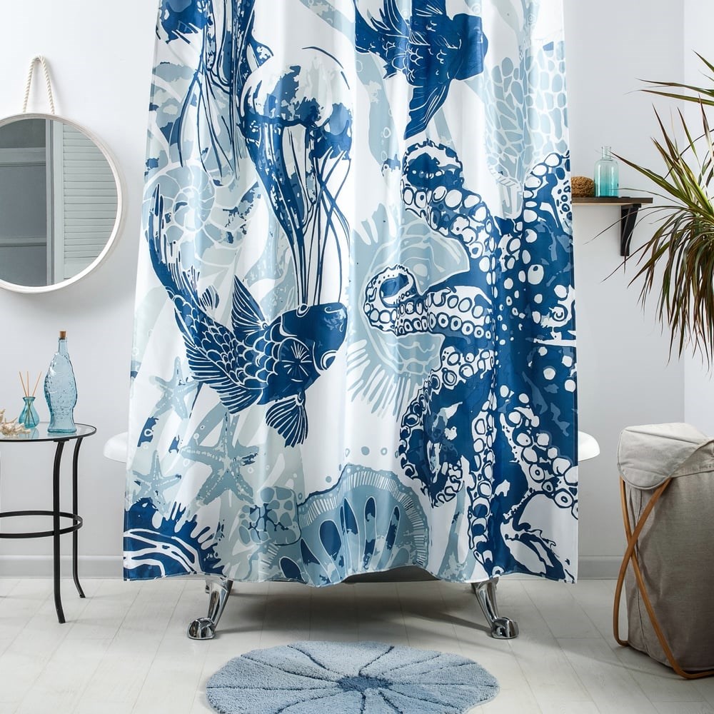 Занавеска для ванной комнаты Moroshka Mare тканевая, цвет синий T691-6