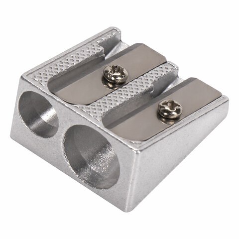 Точилка BRAUBERG "Style", металлическая клиновидная, 2 отверстия для чернографитных карандашей (в том числе утолщенных), 222486