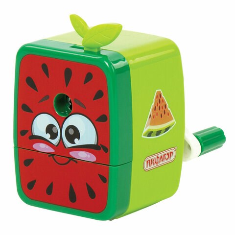 Точилка механическая ПИФАГОР "Арбуз", корпус зелёный/красный, 270427