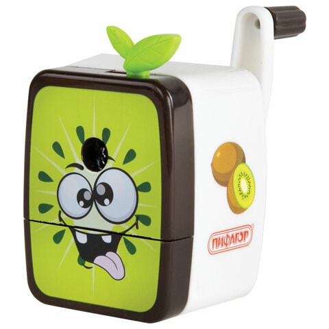 Точилка механическая ПИФАГОР "Киви", корпус белый/салатовый, 270428