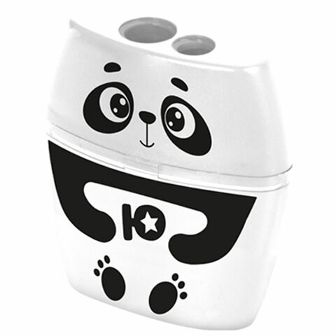 Точилка с контейнером для простых и утолщенных карандашей ЮНЛАНДИЯ "ПАНДА", 2 отверстия, 272507