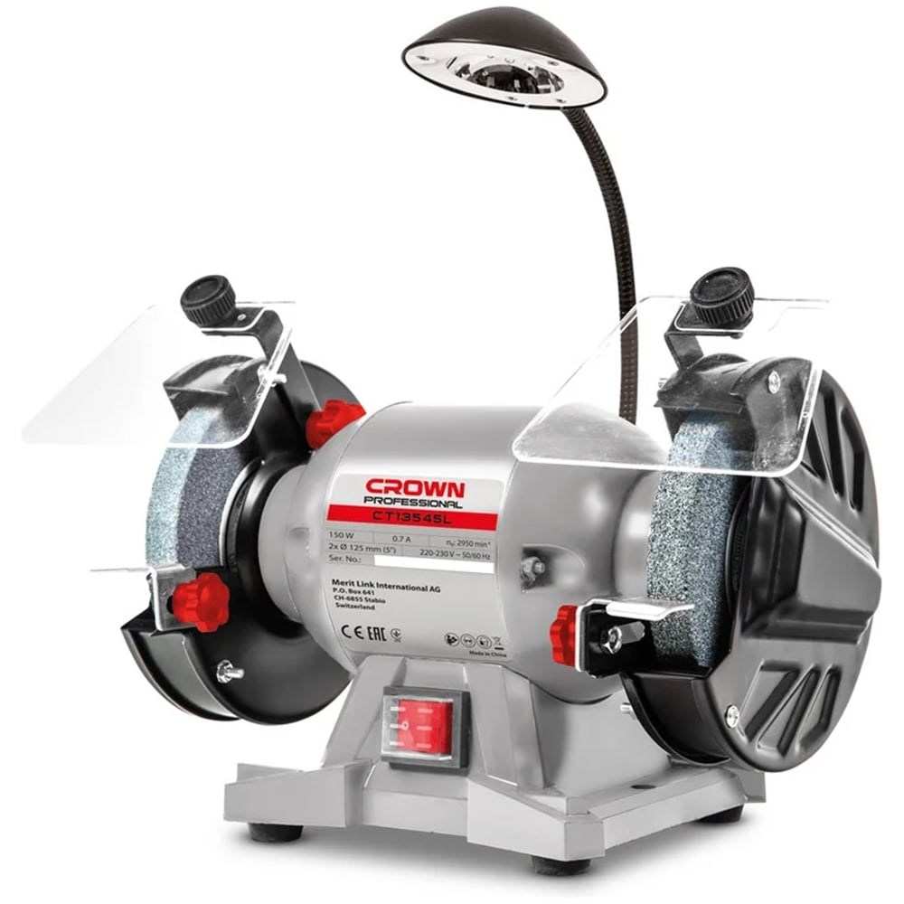 Точильный станок CROWN CT13545L предназначен для шлифовки заготовок, заточки режущих инструментов, зачистки металлических изделий и т.д. Он прекрасно подходит для использования как в домашних условиях, так и в профессиональных мастерских. Благодаря стандартному посадочному размеру 12,7 мм можно устанавливать круги различной зернистости. Металлические кожухи отводят искры, а защитные экраны не ограничивают обзор и обеспечивают безопасность оператора. Литой корпус имеет резиновые опоры для лучшей устойчивости во время выполнения работ. Этот точильный станок отличается высокой производительностью и длительным сроком службы. Двигатель мощностью 170 Ватт не оказывает высокой нагрузки на электрическую сеть. Благодаря своей надежности и функциональности, заточной станок CROWN CT13545L станет незаменимым помощником в работе с инструментами. Особенности: • Индукционный (конденсаторный) двигатель с медными обмотками • Для абразивных шлифкругов 125х16х12.7 • Вал на подшипниках • Резьба шпинделя вала М12 • 2 защитных экрана (регулируемые) • 2 рабочих опоры (регулируемые) • Корпус из алюминиевого литья • Стальные защитные кожухи • Литая опора с отверстиями для крепления к верстаку • Резиновые опоры (4 шт) • Минимум вибраций • Плавный пуск • Пылезащищенный выключатель • LED-лампа на гибкой основе • Вес 5.18 кг