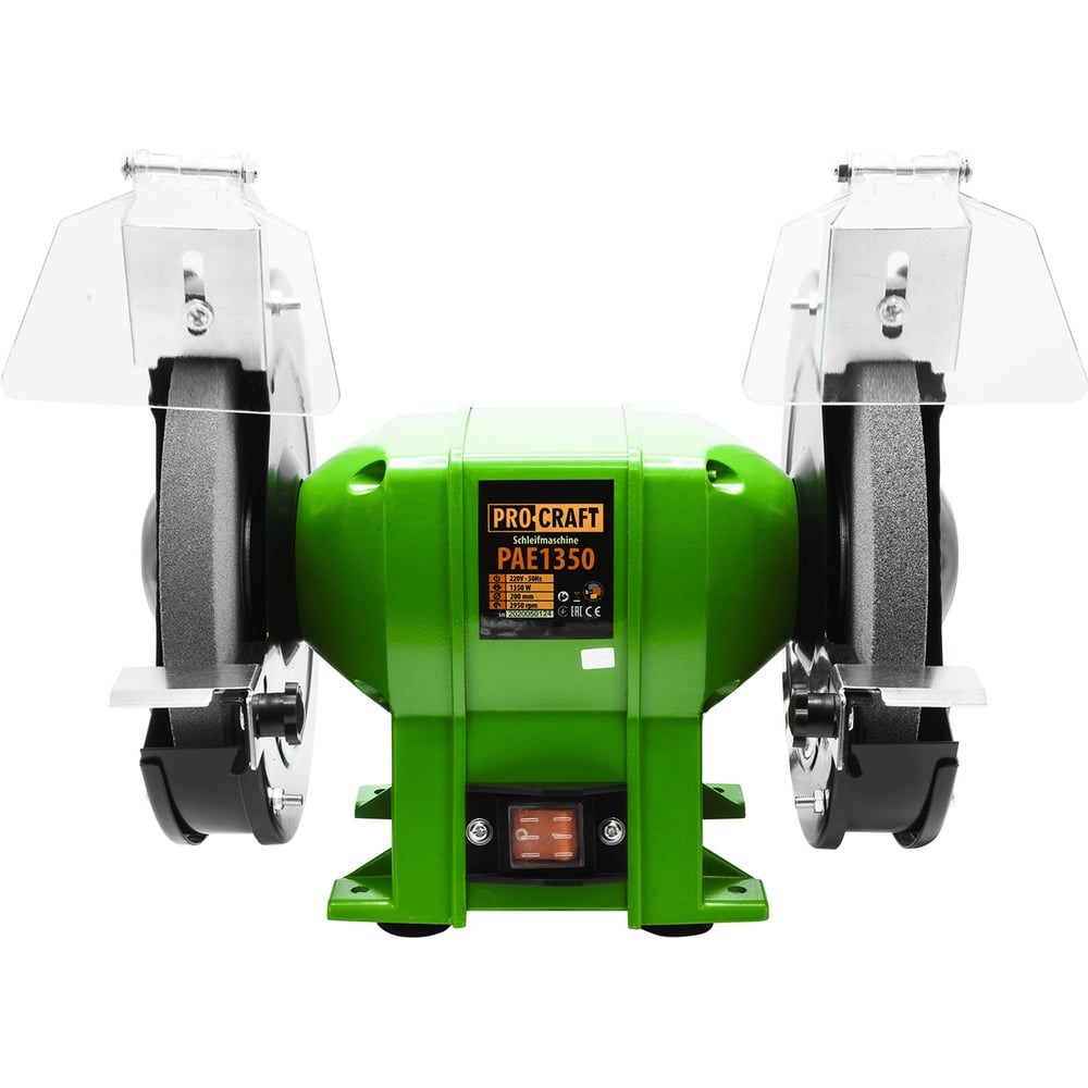 Электрический точильный станок с увеличенной мощностью в 350 Вт предназначен для профессиональной обработки любых металлических поверхностей. Максимальное количество холостых оборотов достигает 2 950 об/мин. С его помощью можно производить заточку садового или строительного инструментария, такого как стамески, ножи, пилы и т.д. Конструкция инструмента предполагает использование двух точильных дисков разного уровня зернистости – оба идут в комплекте. Также инструмент комплектуется подручниками, креплениями защитного стекла и подручников, а также защитными стеклами.