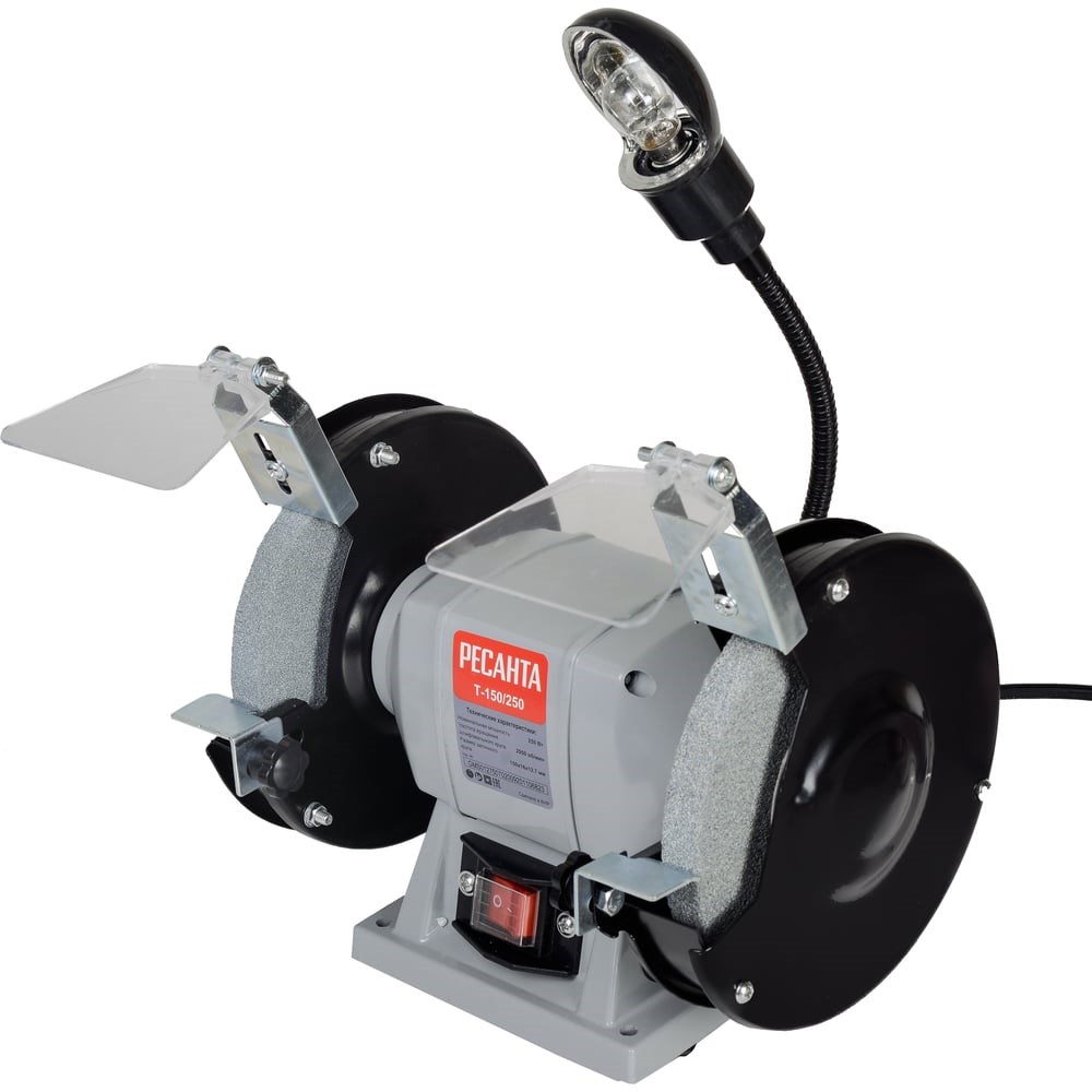 Точильный станок – компактное устройство, которое поможет быстро и качественно заточить рабочий инструмент. Станок состоит из легкого алюминиевого корпуса, а также асинхронного электрического двигателя. Шлифовальные круги крепят на вал. Отличительные особенности модели: Мощность составляет 250 Вт. Использование асинхронного двигателя позволяет уменьшить вибрации при работе устройства. Эффективная система защиты оператора состоит из 3 элементов. Искрогаситель отражает окалину. Защитный экран препятствует попаданию ее остатков на лицо и одежду. Рабочий упор способствует надежному захвату устройства при работе. Подсветка рабочей зоны с помощью гибкой лампы позволяет работать в условиях ограниченной освещенности. Частота вращения вала составляет 2950 об/мин. На корпусе точильного станка расположены специальные отверстия. С их помощью устройство можно закрепить на верстаке. Это позволит не только повысить безопасность использования станка, но и уменьшить вибрацию. Точильный станок Ресанта Т-150/250 компактное, универсальное и безопасное устройство, с помощью которого можно точить ножи, стамески и прочий инструмент. Быстро, безопасно, качественно. Простота и надежность устройства обеспечивает его длительную эксплуатацию.