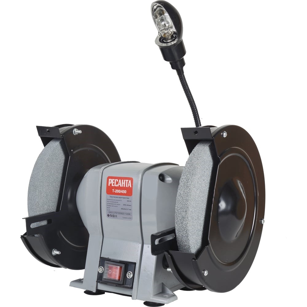 Точильный станок с двумя шлифовальными кругами позволяет использовать 2 разных абразивных материала одновременно. Подходит для формирования кромки у режущих и колющих инструментов с простой поверхностью лезвия: ножи, ножницы, секаторы, фрезы, резцы и т.д. В модели предусмотрены крепления для настольного монтажа и подсветка рабочей зоны на гибкой опоре. Корпус инструмента выполнен из алюминия. Под кожухом располагается асинхронный двигатель мощностью 450 Вт, который передает на валы ротора вращательное движение в 2950 об/мин. Посадочный диаметр для шлифовальных кругов равен 12,7 мм. На валы можно установить круги 200 мм с толщиной 20 мм. Безопасность во время заточки инструмента обеспечивают рабочие упоры для изделия, искрогасители и прозрачные защитные экраны. Они устанавливаются на точильный станок перед первым использованием. Искрогаситель блокирует разлет окалины по рабочему месту, а экран защищает пользователя от попадания металлических частиц. Рабочий упор позволяет расположить лезвие инструмента под нужным углом и предотвратить его соскальзывание при заточке.