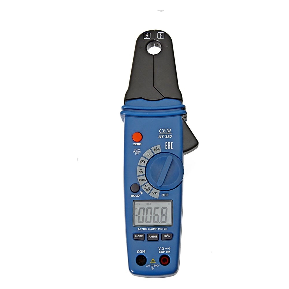 Токовые клещи СЕМ DT-337 481905 работают с высокой разрешающей способностью 1 мА 9 постоянный и переменный ток). Модель подходит для замера тока, напряжения, сопротивления и частоты кабеля диаметром до 12.7 мм. Прибор позволяет проводить диод-тесты подачей тока 0.3 мА и напряжения 1.5 В. Небольшие габариты и вес упрощают транспортировку клещей.