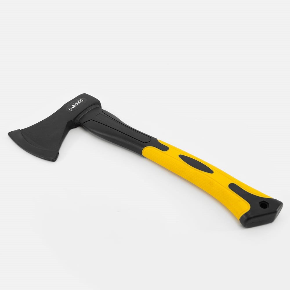 Топор Pobedit обрезиненная фибергласовая рукоять, 800 г 2544308 применяется для работы с древесиной. Рабочая часть изготовлена из закаленной стали, благодаря чему отличается прочностью и долгим сроком службы. Рукоять из фибергласа оснащена обрезиненным покрытием для защиты от скольжения руки при работе. Для компактного хранения инструмента в подвешенном виде предусмотрено отверстие в рукоятке.