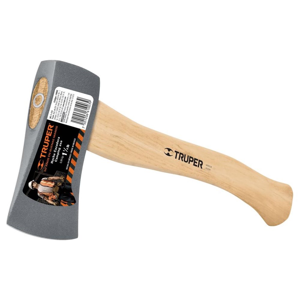 Топор TRUPER HC-1-1/4 565 г, с деревянной рукояткой 14950 предназначен для разрубания деревянных заготовок, среза веток, колки дров. Рабочая часть выполнена из кованой стали марки 1045, которая прошла двойную обработку. Рукоятка изготовлена из дерева и имеет длину 360 мм.