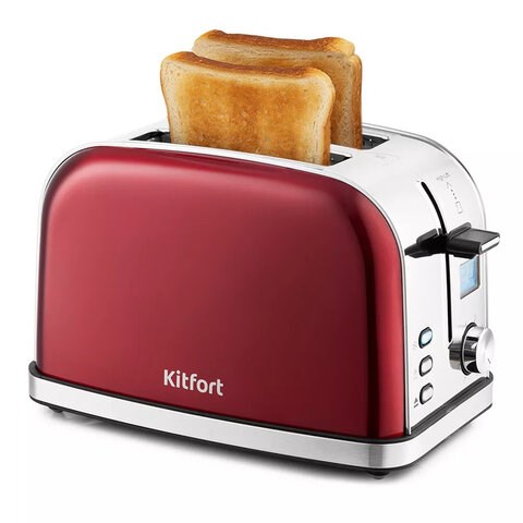 Тостер KITFORT КТ-2036-1, 950 Вт, 2 тоста, 8 режимов, цифровой дисплей, металлический, красный