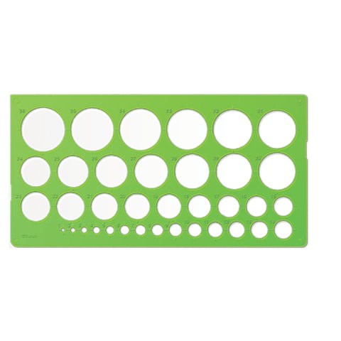 Трафарет окружностей, 36 элементов диаметром от 1 до 36 мм, зеленого цвета, ТТ21