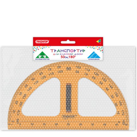 Транспортир 50 см, 180 градусов, пластиковый, для классной доски, с держателем, ПИФАГОР, 210876