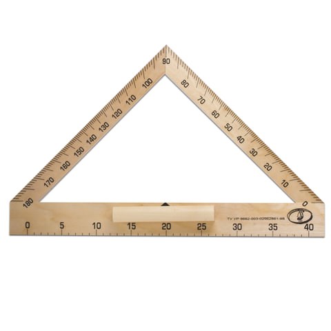 Является незаменимым помощником учителя геометрии, алгебры, физики. Имеет ручку для удобства черчения на вертикальной или наклонной школьной доске. На шкалу нанесена разметка углов, в вершине угольника - прямой угол.