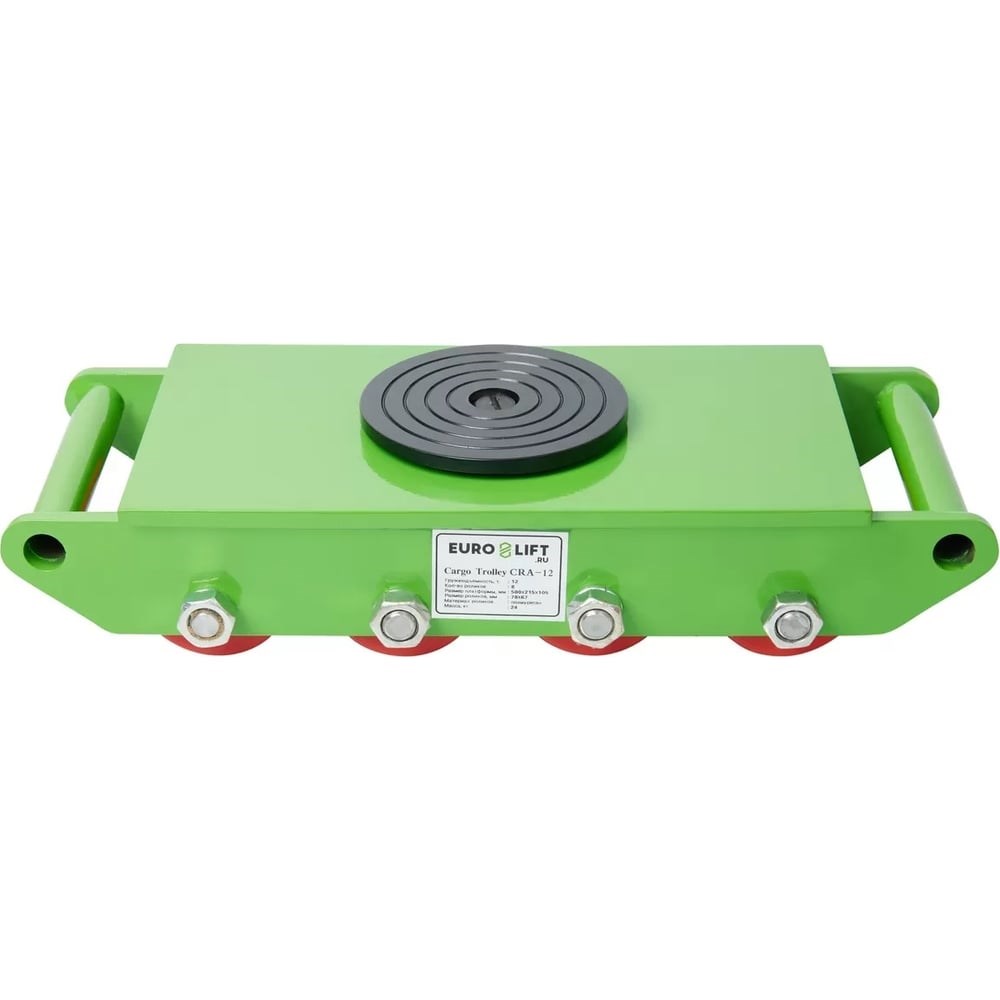 Транспортно-роликовая платформа EURO-LIFT CRA 12 г/п 12 т 00012453 используется для перевозки грузов с возможностью поворота в горизонтальной плоскости. Изделие обладает небольшими размерами. Значительную площадь соприкосновения с поверхностью придают 8 роликов. Благодаря такой системе даже полностью загруженная платформа не вредит полам.