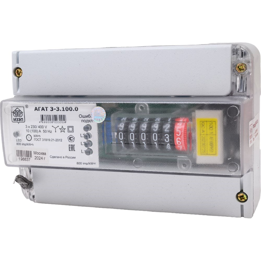 Трехфазные электронные счетчики типа АГАТ 3 в третьем исполнении корпуса с электромеханическим отсчетным устройством (ЭМУ) предназначены для учета электроэнергии в мелкомоторном секторе, у бытового потребителя, в небольших хозяйствах, дачных и садоводческих объединениях, частном секторе.Современный компактный корпус с креплением на DIN-рейку типа ТН-35 позволяет легко устанавливать счетчики практически в любые электротехнические шкафы. Счетчики АГАТ 3-3.100.0 позволяют вести однотарифный учет активной энергии независимо от её направления.Благодаря невысокой стоимости, простоте и надежности электронные счетчики доступны для применения у бытовых потребителей, а также как альтернатива по замене старых индукционных счетчиков.Счетчики зарегистрированы в Федеральном информационном фонде по обеспечению единства измерений под номером 83910-21. Срок действия сертификата об УТСИ до 7 декабря 2026 г.