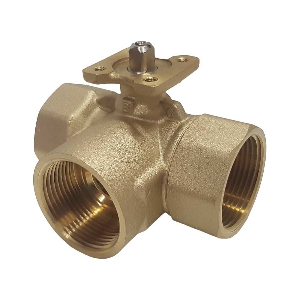 Трехходовой шаровой кран TECHNO 3032B латунный, под привод DN32, G1 1/4, КVS 25 640332-2 предназначен для систем горячего и холодного водоснабжения и водных растворов. Кран отличается надежностью, долгим сроком службы и высокой герметизацией. Эти параметры достигаются благодаря литому корпусу из латуни с применением фторопластовых уплотнений (PTFE), двум уплотнительным кольцам из этиленпропиленового каучука (EPDM). Шар и вал изготовлены из нержавеющей стали. Дополнительные характеристики: Максимальное давление - PN20 (~Ру20, 2Мпа, 20Bar, 20атм) Перепад давления - PN3,5 Запорное давление PN13 Рабочая среда - вода, содержание гликоля не более 50 %, пар низкого давления Температура рабочей среды - от -5°C до 120°C. Кронштейн-переходник под привод и сам привод приобретаются отдельно.