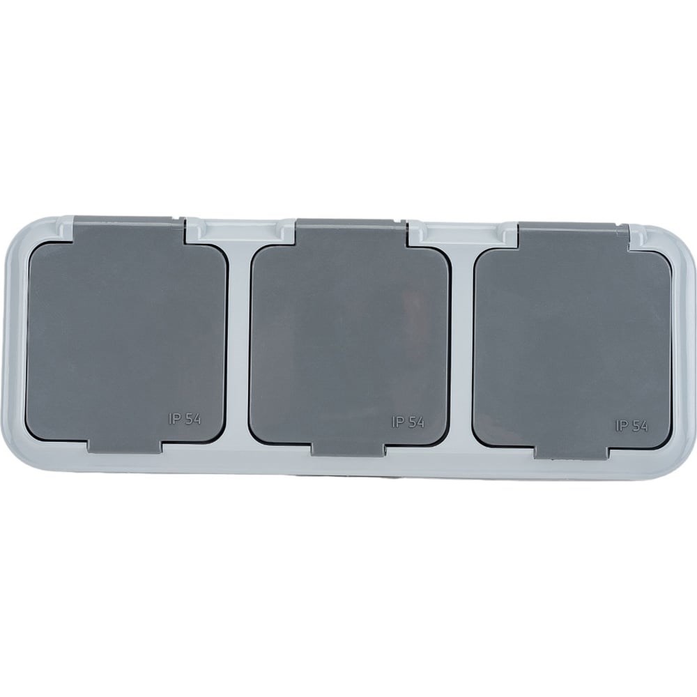 3-местная розетка Bylectrica ОУ IP54, серия ПРАЛЕСКА АКВА, серый, РА16-0131(03)