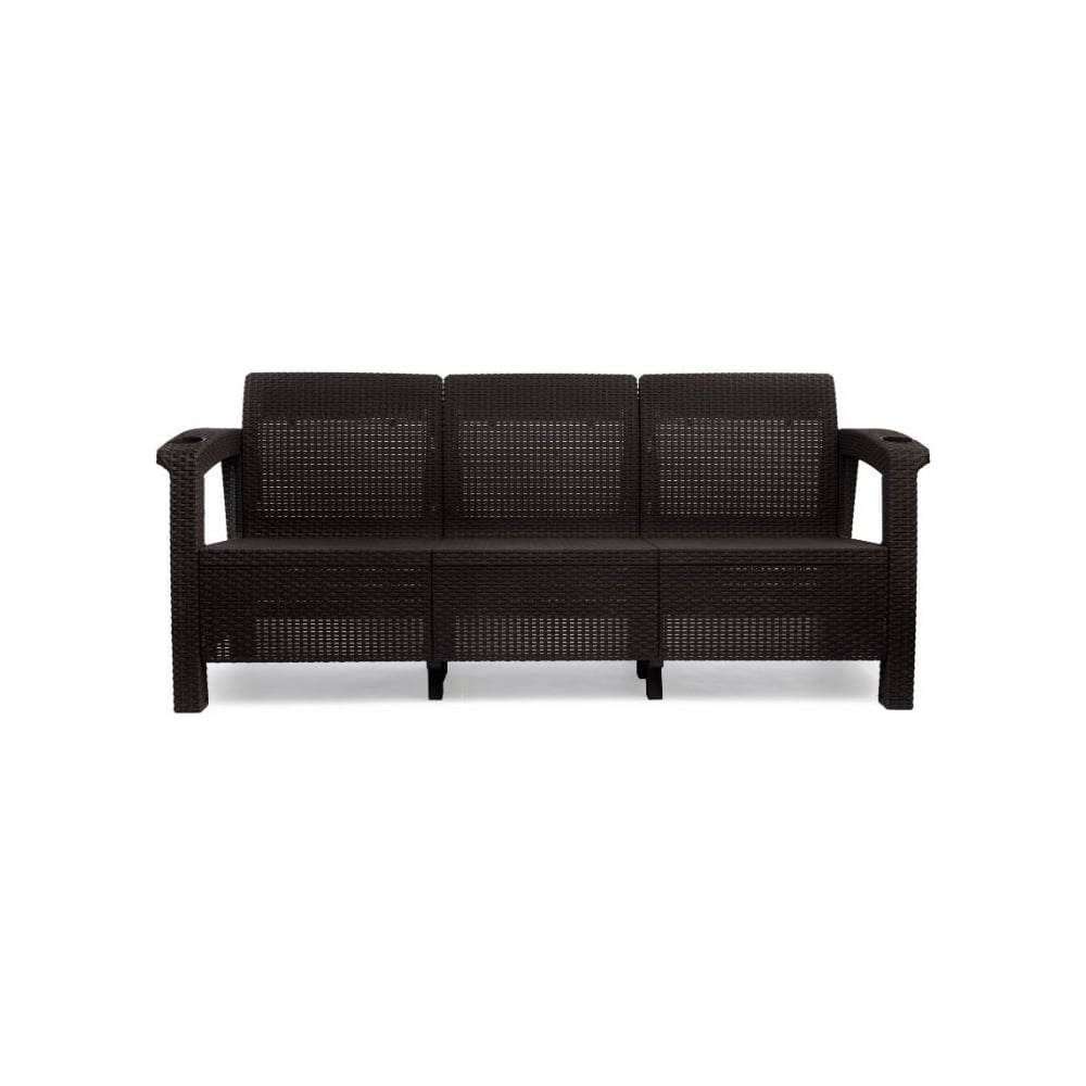 Трехместный садовый диван отлично впишется в интерьер загородного участка. Он целиком изготовлен из прочного полипропилена, поэтому имеет высокую механическую прочность и долговечность. Изделие не ржавеет, устойчиво к повышенным температурам и выгоранию: его можно оставлять на участке и в дождь, и на ярком солнце. Диван легко перемещать с места на место, чтобы создать зону отдыха там, где захочется. Подушки для дивана входят в комплект, изготовлены из прочного и водоотталкивающего материала Оксфорд 600. Также при желании можно с легкостью собрать сет на свой вкус, дополнив его одной или несколькими единицами мебели линейки. Диван - это идеальное решение по оформлению зоны отдыха в доме, на садовом участке, в офисном помещении или в кафе.