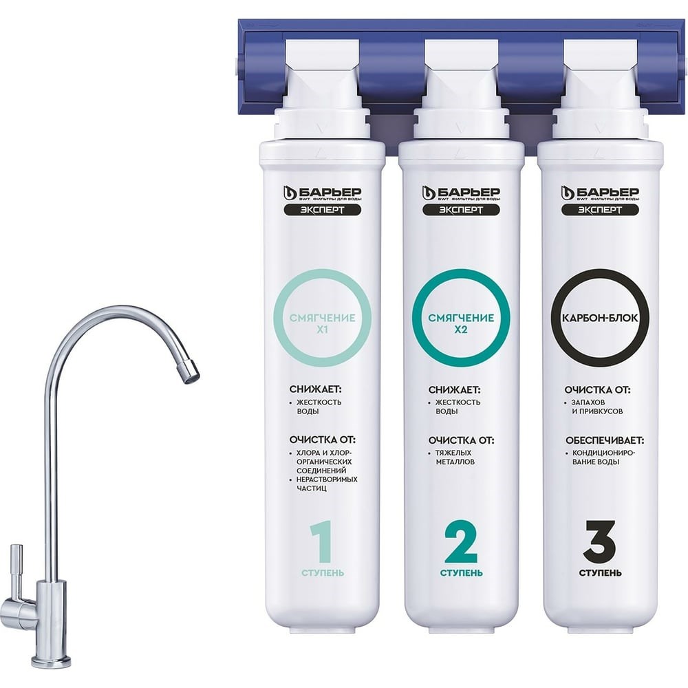 Трехступенчатый быстросъемный фильтр под мойку для очистки воды Барьер ЭКСПЕРТ Жесткость х2