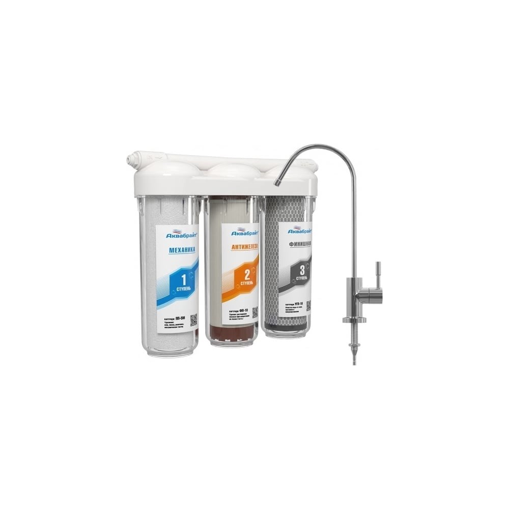 Трехступенчатый фильтр под мойку Аквабрайт АБФ-ТРИА-АНТИЖЕЛЕЗО