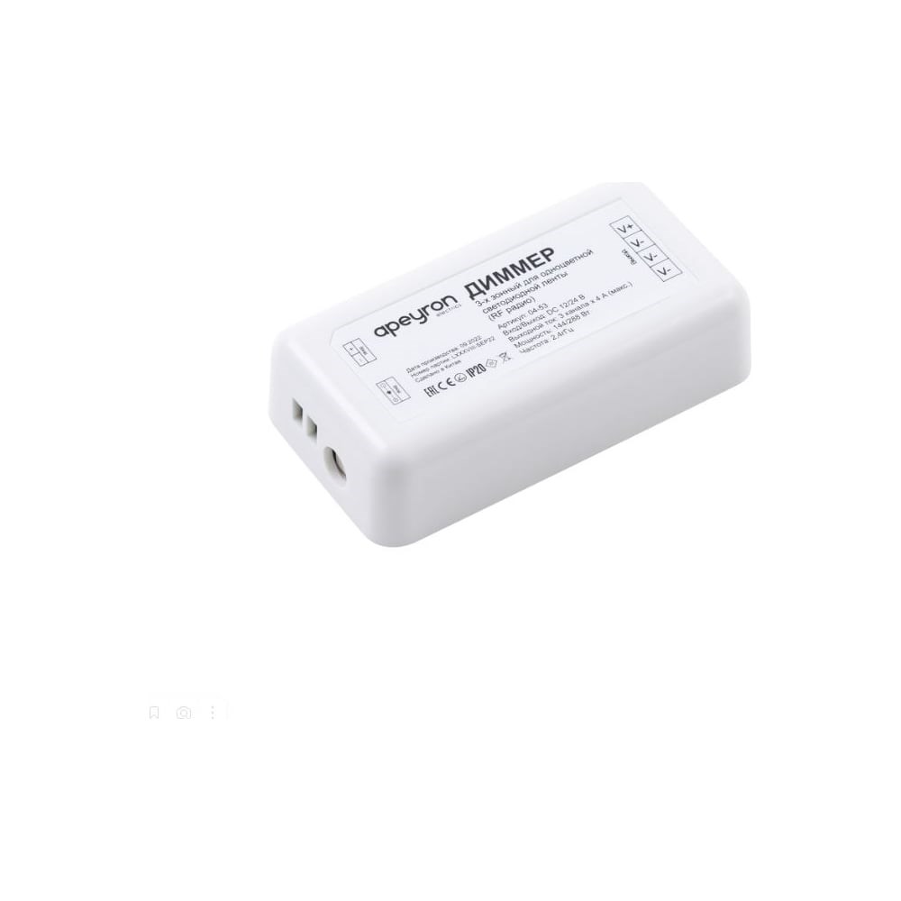 Трехзонный диммер предназначен для управления монохромной светодиодной лентой.К 1 пульту управления можно подключить до 3-х диммеров и управлять ими по отдельности, создавая нескольких зон освещения с уникальной световой и цветовой сценой для каждого помещения.С помощью диммера можно включать или выключать светодиодную ленту, отрегулировать ее яркость, а также использовать различные динамические режимы и отрегулировать скорость их работы.Одно из преимуществ данного изделия заключается в возможности работать как от напряжения 12 В, так и 24 В, а значит его можно использовать со светодиодными лентами с соответствующим напряжением. Важно отметить, что в зависимости от того, с каким напряжением предстоит работать устройству, будет отличаться и максимальная мощность нагрузки, которую можно подключить к нему. Так, при напряжении 12 В максимальная нагрузка будет равна 144 Вт, а при напряжении 24 В уже 288 Вт. Это значит, что к данному изделию вы можете подключить в два раза больше светодиодной ленты 24 В.Диммер не укомплектован дистанционным сенсорным радиопультом управления (приобретайте 26160437 - арт. 04-52).Накладной корпус диммера, выполненный из пластика, имеет компактный размер 85х45х23 мм, благодаря чему изделие можно разместить в узкой нише. Степень защиты от пыли и влаги соответствует стандарту IP20, что подразумевает установку устройства в сухом, проветриваемом помещении.