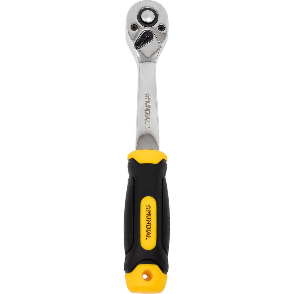 ПРОФЕССИОНАЛЬНЫЙ Реверсивный ключ-трещотка с быстрым сбросом и изогнутой рукояткой 1/4” MUNDIAL — Ключ-трещотка с инновационной системой быстрого сброса MUNDIAL, изготовленный из высокопрочной хромованадиевой стали с хромированным покрытием для максимальной защиты от коррозии и износа. Изогнутая рукоятка, объединенная с удобной пластиковой ручкой, обеспечивает оптимальный доступ к труднодоступным местам и снижает усталость при работе. Механизм быстрого сброса позволяет мгновенно отсоединить головку ключа, существенно ускоряя работу и повышая эффективность. Прочный и надежный, этот ключ-трещотка — незаменимый инструмент как для профессионалов, так и для требовательных пользователей, которым важна скорость и удобство работы.72 зубца.Длина - 196 мм.Хромованадиевая сталь (Cr-V)Хром (Cr) – закаленная стальВанадий (V) – повышенная стойкость к высоким температурам и сопротивлению деформацииХромованадиевые стали широко используются для производства слесарно-монтажного инструмента. Свое распространение этот сплав получил из-за приемлемой стоимости и оптимальных характеристик прочности и износостойкости. В ходе производства хромованадиевая сталь подвергается термообработке, в результате которой приобретает способность выдерживать ударные нагрузки при повышенных температурахУстойчивость к коррозии и образованию ржавчиныХромованадиевая сталь лучше подходит для инструментов, которым требуется более острая кромка и износостойкость Двухкомпонентная мягкая рукояткаЭргономичная рукоятка обеспечивает надёжный и комфортный хват, минимизируя усталость рук, что важно при длительной работеИмеют высокую прочность и износостойкость, хорошо защищающей от царапин и следов
