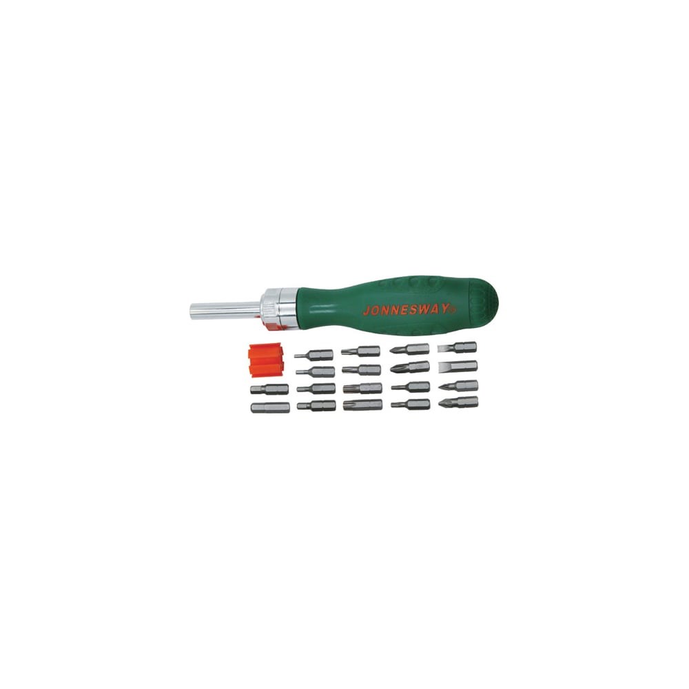 Трещоточная отверточная рукоятка (20 зубцов) с набором бит Jonnesway DR0119S используется для слесарно-ремонтных работ различного типа. Благодаря трещотке инструмент может использоваться с максимальной эффективностью и минимальными затратами труда.