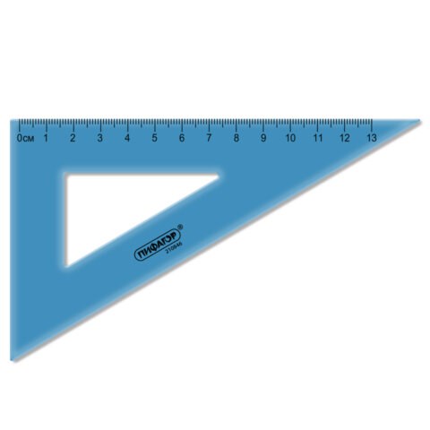 Изготовлен из прочного тонированного пластика толщиной 1,7 мм. Длина шкалы - 13 см, углы - 30° и 60°. Обладает четкой контрастной печатной разметкой. Размер - 8 х 14 см. Цвет треугольника - синий. Поставляется без упаковки.