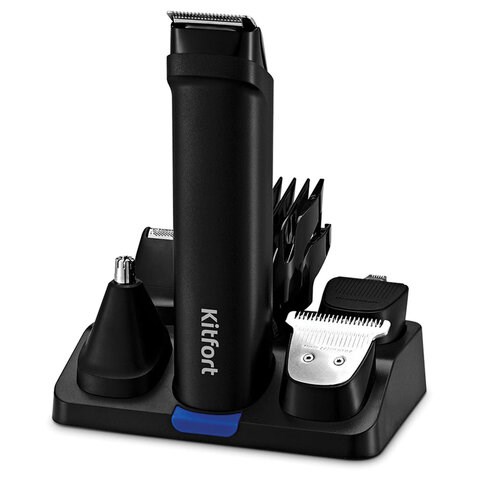 Триммер Kitfort КТ-3140-3 — многофункциональное устройство, которое включается и выключается нажатием на одну кнопку. В комплектацию входит шесть насадок — с лезвием из нержавеющей стали шириной 40 мм, для носа и ушей, для точной стрижки и два гребня с возможностью регулировки длины среза от 0,5 до 10 мм и от 10 до 20 мм. Наличие базы-подставки делает хранение аксессуаров удобным. Прибор поставляется с расческой, маслом для смазки и щеточкой для чистки.