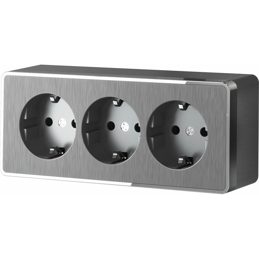 Накладная тройная розетка с заземлением Gallant W5073104 250 В 16 A в цвете графит рифленый предназначена для подключения сразу нескольких электрических приборов бытового назначения. Розетка используются в квартирах, частных домах, коммерческих помещениях и устанавливаются в наиболее удобных местах для комфортного использования.Механизм имеет удобное подключение проводов с сечением от 0.75 мм кв до 2.5 мм кв, осуществляемое с помощью винтовой клеммы. Корпус из ударопрочного поликарбоната устойчив к механическим повреждениям и обладает термостойкостью.Накладной механизм не требуют дополнительных работ по монтажу отверстий и его можно устанавливать на любые поверхности.