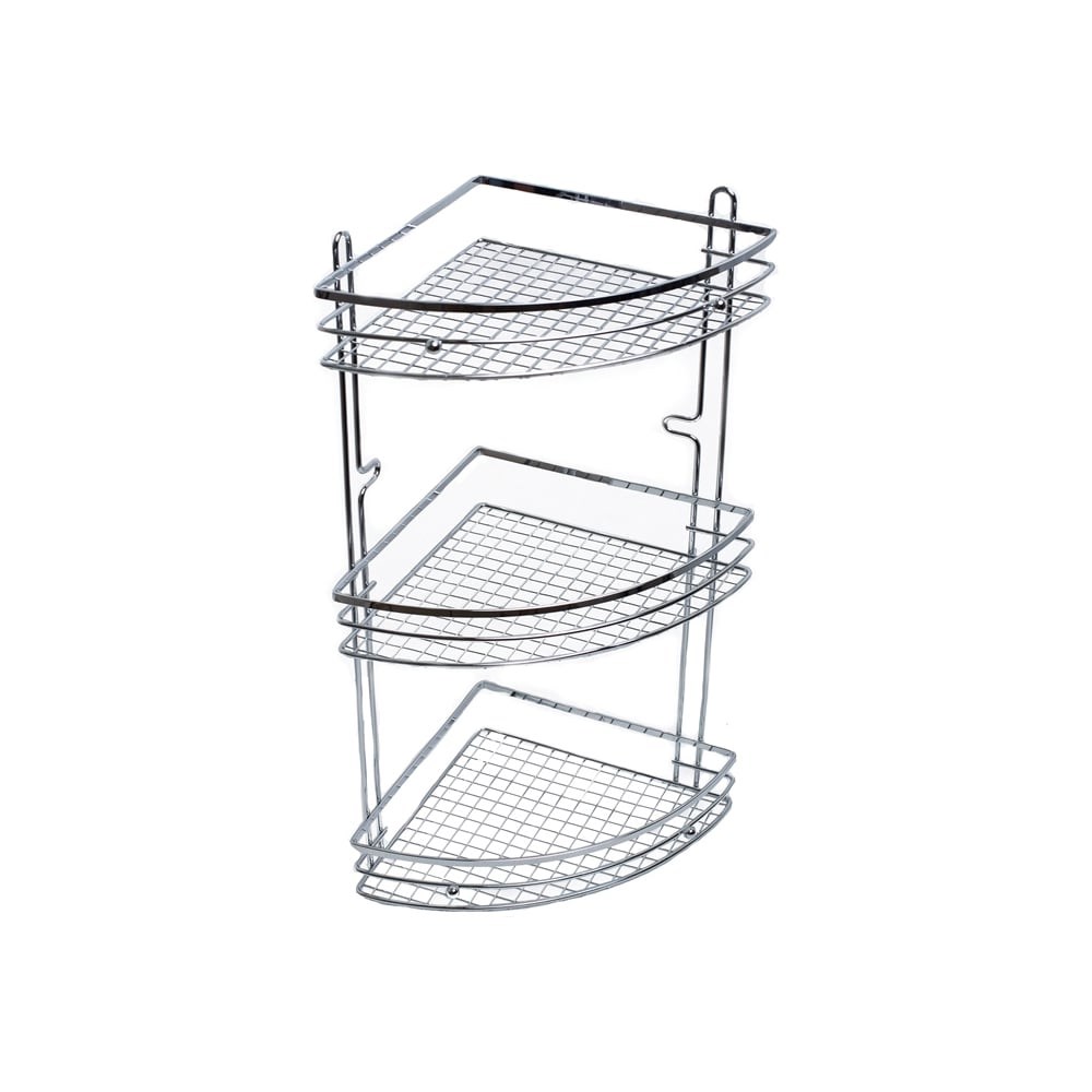 3-ярусная угловая полка для ванной комнаты крепится на стену над самой ванной и используется для хранения различных средств и аксессуаров: шампуней, гелей для душа, мочалок, бритвенных станков и т. д. Данный аксессуар позволяет расположить всё необходимое в одном месте, а благодаря современному дизайну полка идеально впишется в любой интерьер. Металл, размеры 27,5х20х45,5 см.