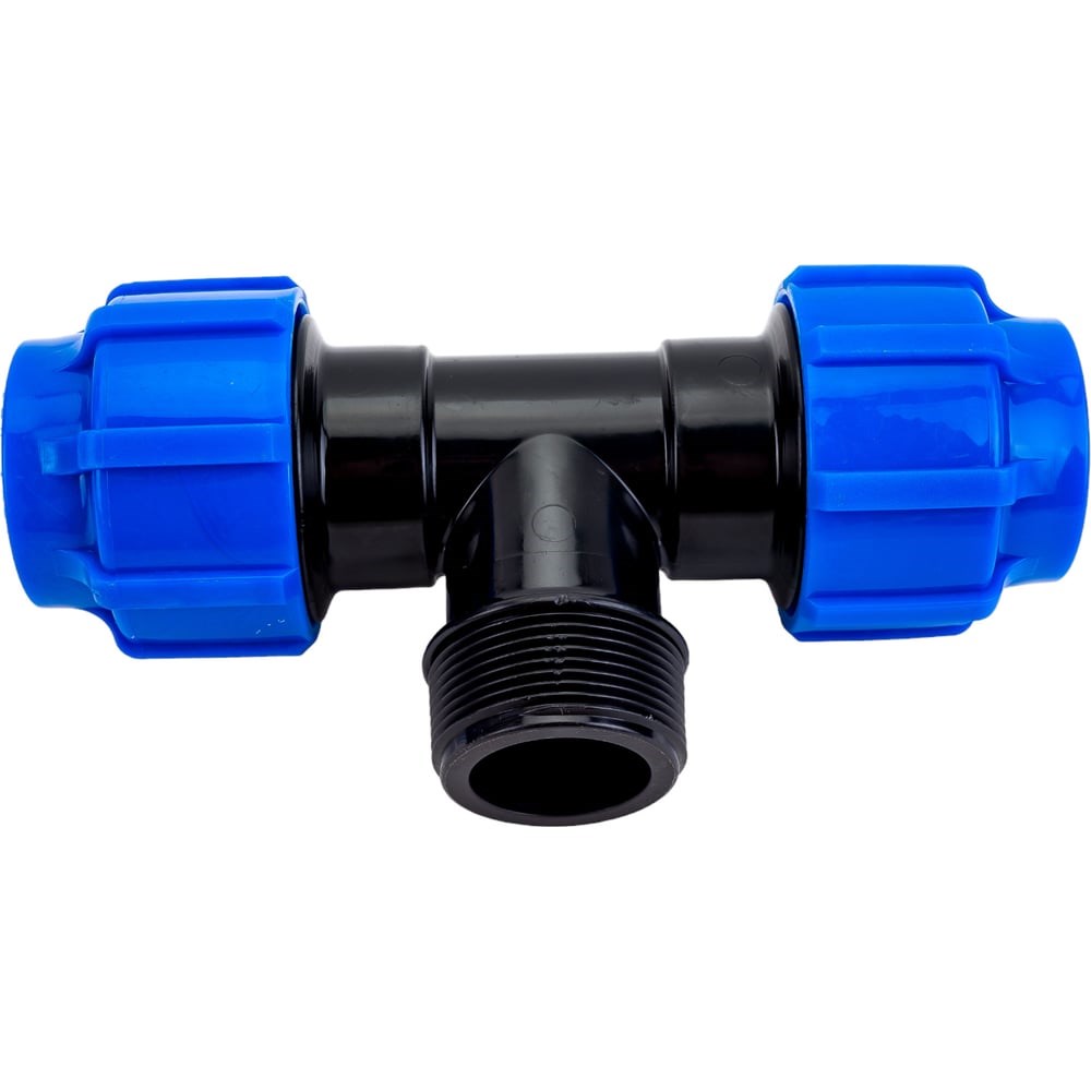 Тройник с наружной трубной резьбой компрессионный является универсальной деталью полиэтиленового (ПНД) трубопровода имеющий внутреннюю резьбу с шагом, соответствующим стандартным размерам стальных труб. Благодаря этому тройник можно использовать для перехода с ПНД трубы на стальную и наоборот.