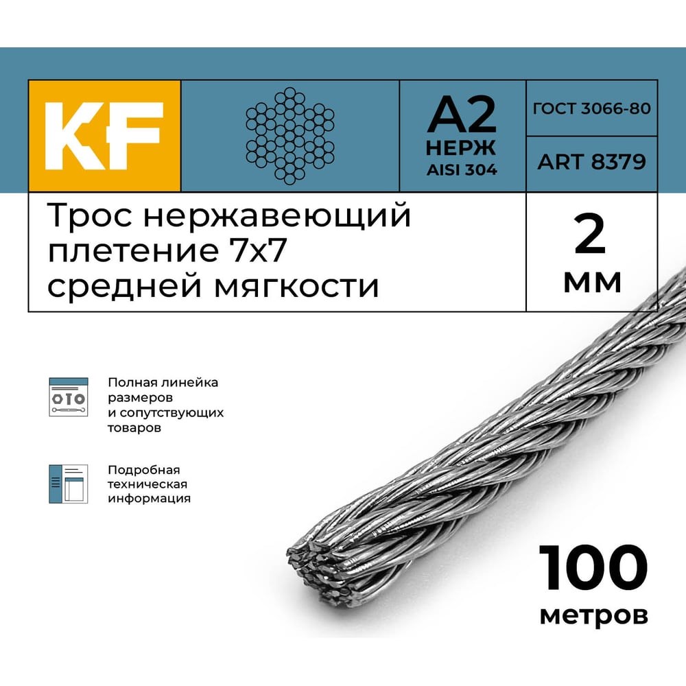 Трос KREPFIELD 8379А2ТРОС2ММ-100