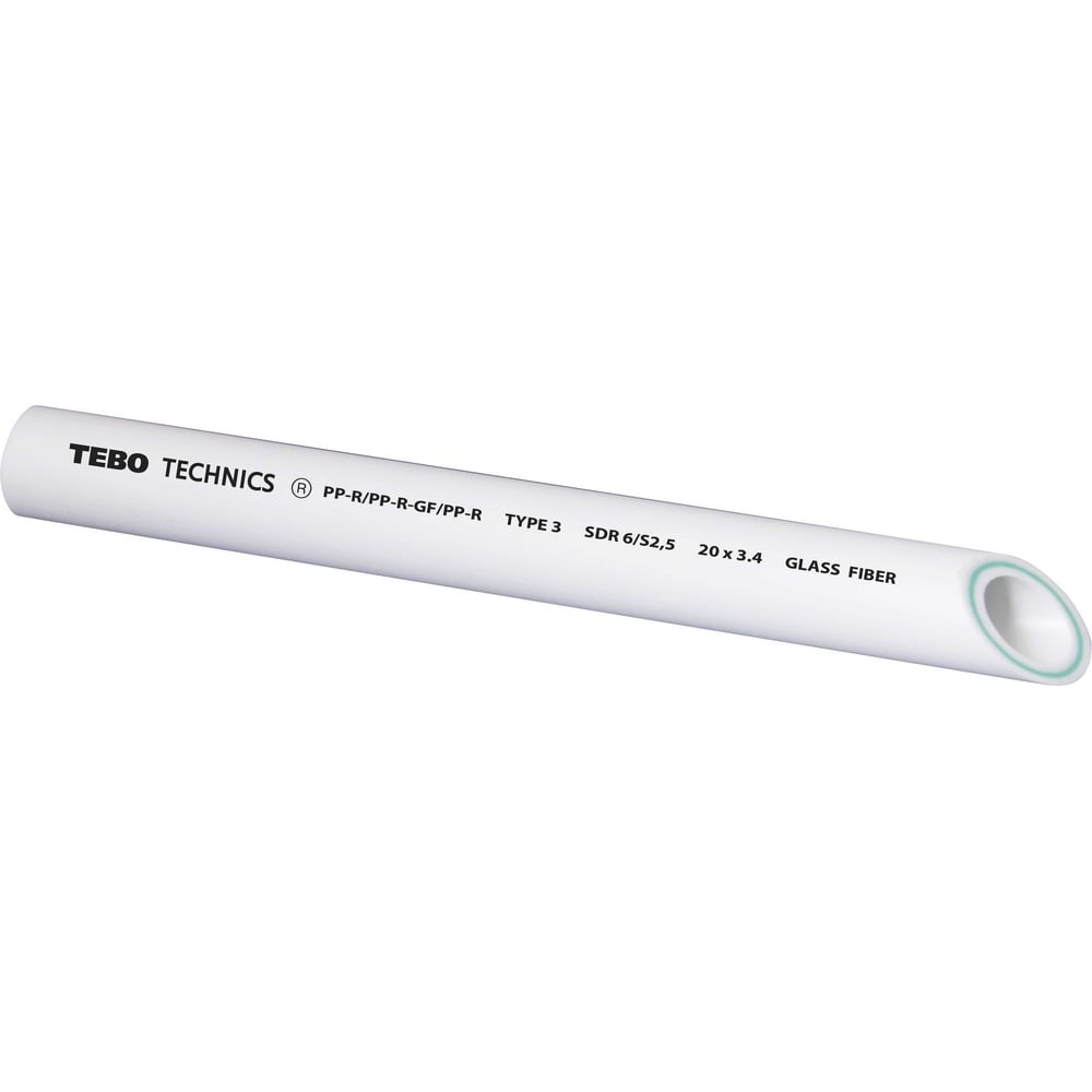 Полипропиленовые трубы TEBO technics (SDR6) применяются в системах хозяйственно-питьевого назначения, горячего водоснабжения, отопления, а также в качестве технологических трубопроводов, транспортирующих жидкости и газы, не агрессивные к материалам трубы и фитингов. Наружный и внутренний слой трубы TEBO technics изготовлены из современного материала — Polypropylene Random Copolymer («Рандом сополимер» PP-R тип 3). Между этими слоями находится слой полипропилена с содержанием стекловолоконной фибры (GF) 20%, окрашенный в зеленый цвет. Армированные стекловолокном трубы имеют более низкий коэффициент теплового расширения и высокую поперечную жесткость. Слой стекловолокна не защищает трубу от кислородной диффузии. Трубы и фитинги TEBO technics соответствуют нормам стандартов ГОСТ 32415-2013, DIN 8077/8078.
