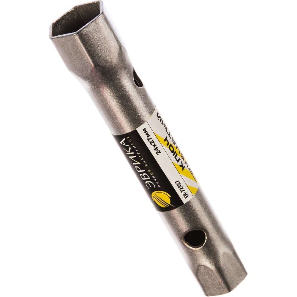 Трубчатый ключ 24х27мм ЭВРИКА ER-72427 выполнен из цельной детали. Это обеспечивает высокую прочность инструмента и устойчивость на разрыв. Благодаря полости ключ обладает небольшим весом. Для работы с увеличенным усилием необходим рычаг. Присутствуют необходимые технологические отверстия.
