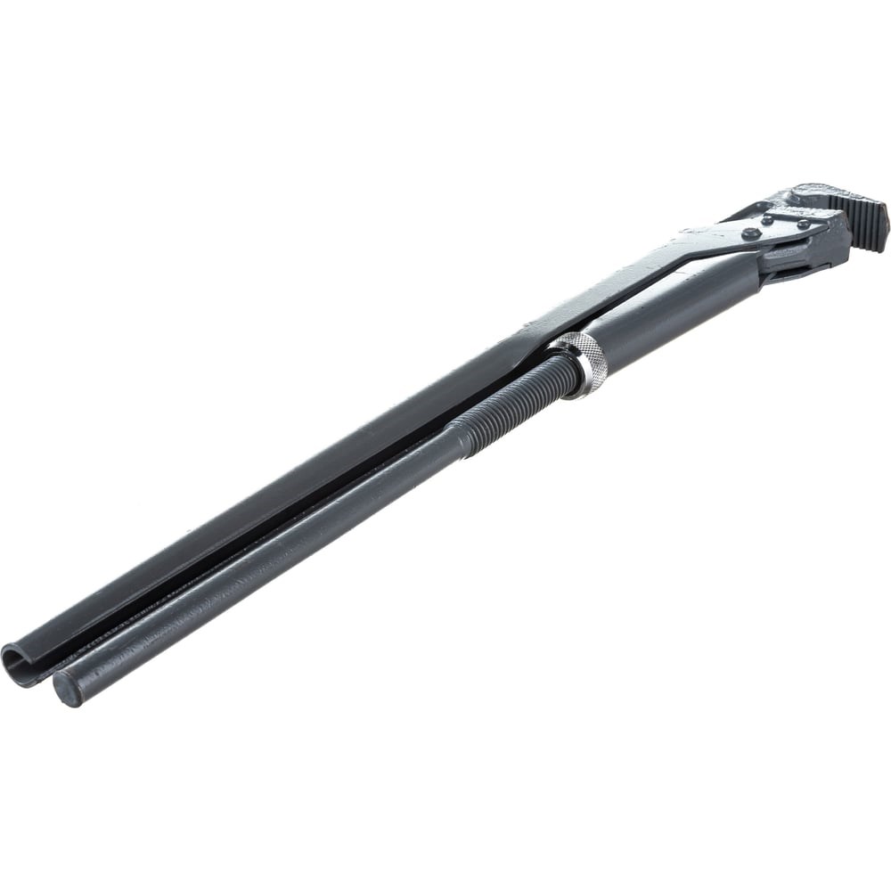 Трубный рычажный ключ КТР-4 НИЗ Без бренда 15794 - слесарный инструмент, применяемый для работ с трубами диаметром до 4". Выполнен из инструментальной стали 45, поэтому обладает высокой стойкостью к износу. Одна из губок имеет зубцы, наклоненные против вращения, что обеспечивает надежный захват.