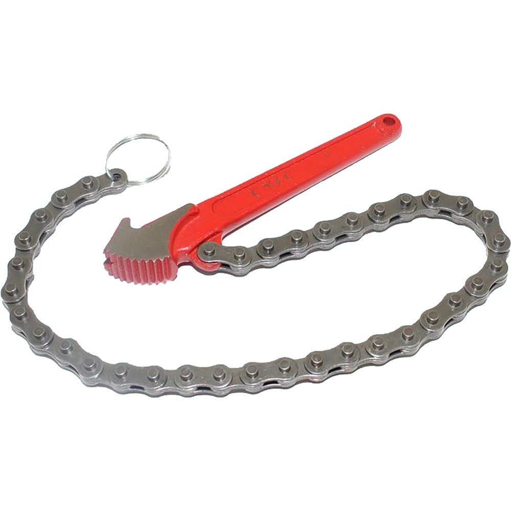 Трубный цепной ключ CNIC TD06K6 односторонний, до 6", 150 мм, L-445 мм 70792 предназначен для работы с различными по диаметру трубами. Это специальный слесарный инструмент, без которого не сможет обойтись ни один профессиональный сантехник. Цепной ключ всегда требуется при необходимости выполнить демонтаж или монтаж труб или в случае ремонта трубопроводов, так как позволяет выполнять работу с наименьшими усилиями. Максимальный диаметр захвата 150 мм. Общая длина ключа 445 мм.