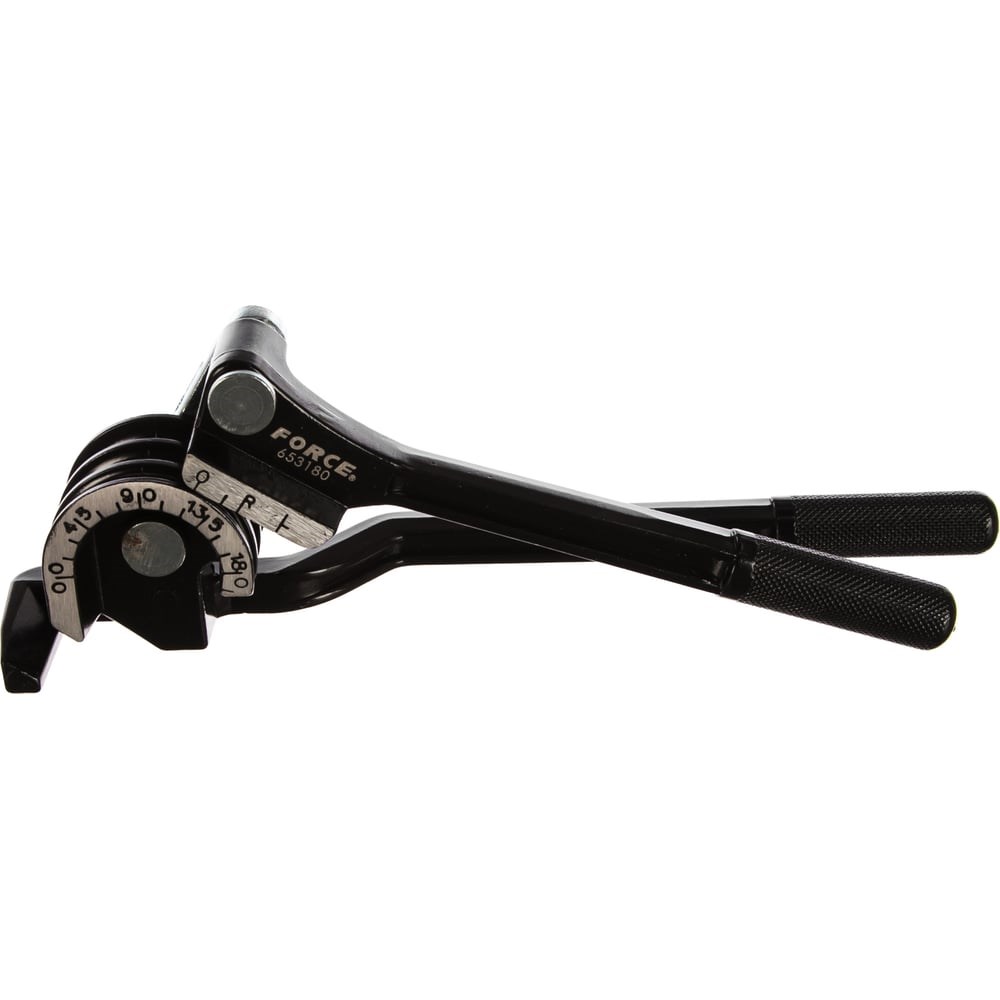 Трубогиб FORCE 6, 8, 10 мм 180град. длинн. рукоятка 653180 предназначен для гибки металлических труб малого диаметра под углом до 180 градусов. Подходит для бензиновых, масляных и тормозных магистралей из меди, алюминия или другого мягкого металла (Ø 6 - 8 - 10 мм.) Внимание, для стальных трубок использовать запрещено! Модель используется в сфере монтажа вентиляционных систем, холодильной техники, а также гидро- и пневмосистем. Для удобства эксплуатации удлиненная рукоятка имеет рельефную поверхность.