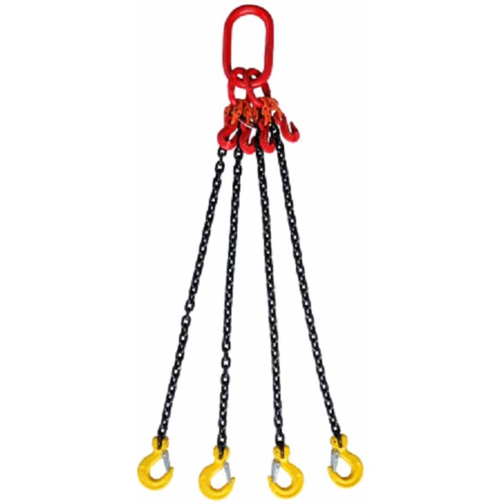 Цепной четырехветвевой строп представляет собой универсальное грузозахватное приспособление для подъема и перемещения грузов, состоящее из четырех цепей высокого класса прочности. Строп оснащен крюками с защелками для безопасной эксплуатации. Иногда цепной четырехветвевой строп обозначают как «паук цепной», также он соответствует марке «строп 4сц».Характеризуется мобильностью, компактностью, длительным сроком службы, гибкостью, долговечностью, может работать в агрессивных средах, при низких и высоких температурах, ремонтопригоден, а так же возможностью использования при различных способах строповки.Изготовлен в строгом соответствии с РД 10–33–93 с изм. РД 10–231–98 «Стропы грузовые общего назначения, требования к устройству и безопасной эксплуатации», а также европейскими стандартами EN 13414-1, EN 13414-2 и EN-13414-3.