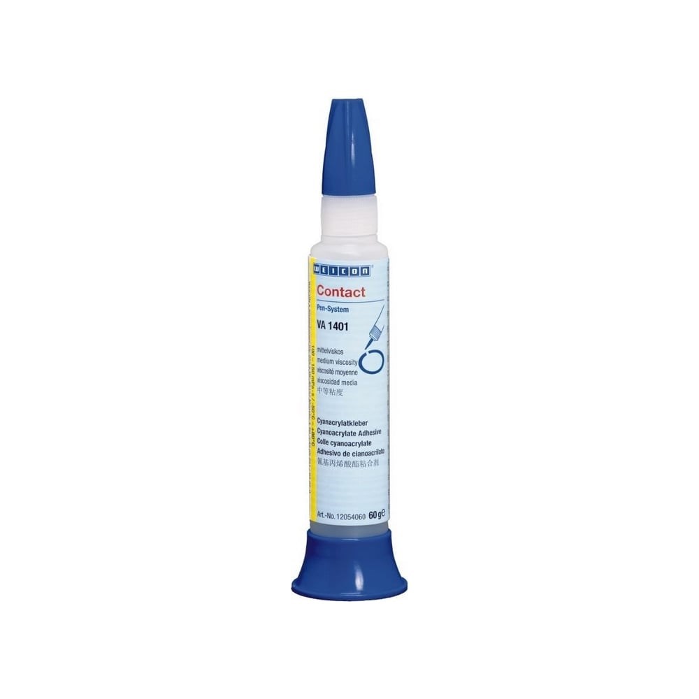 Цианоакрилатный клей WEICON Contact VA 1401 60 г (основа - этилат) wcn12054060 быстро полимеризуется засчет влажности, находящейся на склеиваемой поверхности и воздействию воздуха. Клей отличается экономичным расходом. Одной капли хватает на поверхность площадью 3-5 см². Клей является однокомпонентным, не содержит в составе растворителя. После застывания остается бесцветным. В основе - этил-циноакрилат. Склеивает ткань, бумагу, картон, а также пенорезину и крупнопористые эластомеры. Подойдет для склеивания металла, пластика. резины.